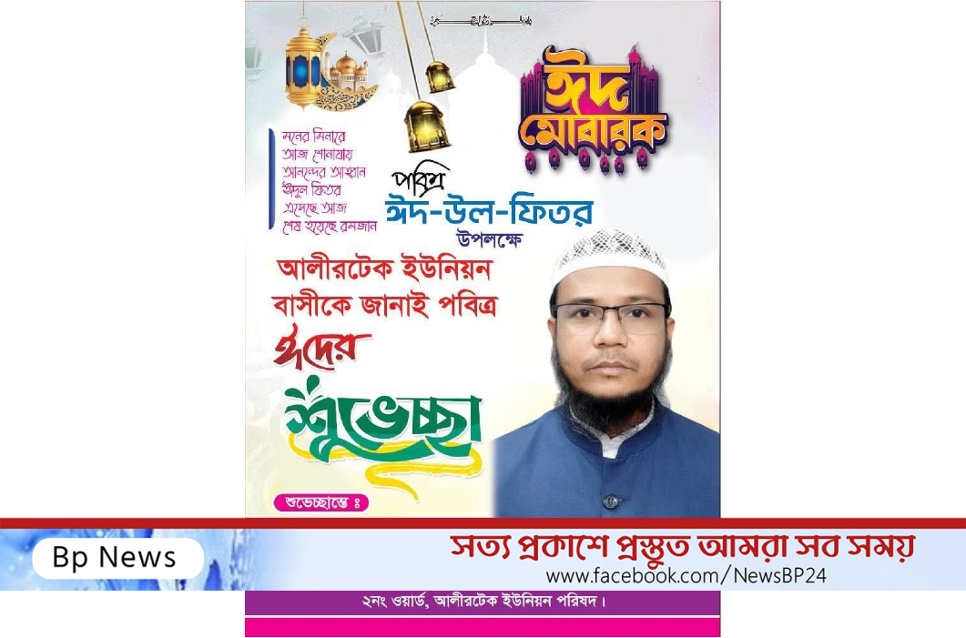পবিত্র ঈদুল ফিতর উপলক্ষে আলীরটেক ইউনিয়নবাসীসহ দেশবাসীকে আন্তরিক শুভেচ্ছা ও অভিনন্দন জানিয়েছেন মোঃ দেলোয়ার হোসাইন।