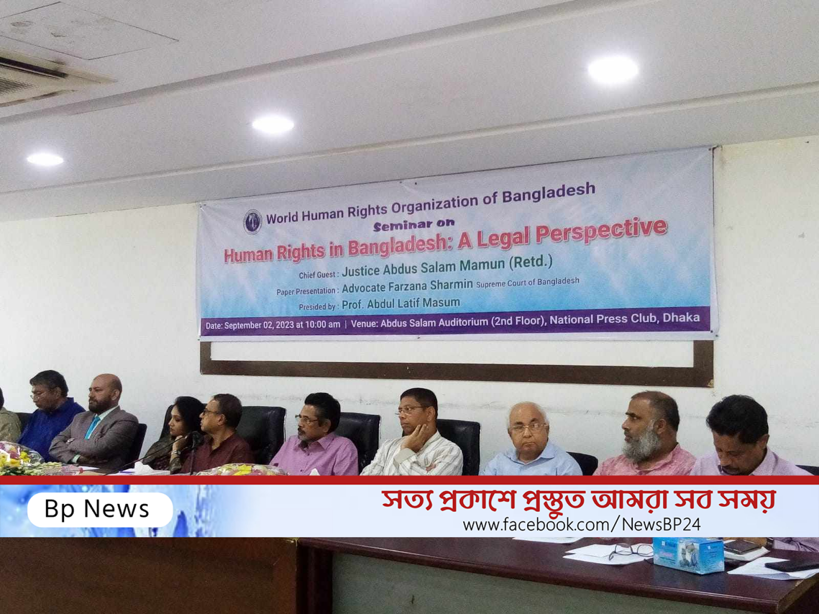 নিজস্ব প্রতিবেদক : সরকার চরম মানবাধিকার লংঘন করছে। রাষ্ট্রকে জটিল সমীকরণের মধ্যে ফেলে দিয়েছে। বিভেদ তৈরি করছে। বিভেদের মাধ্যমে সমাধান হবে না বলে মন্তব্য করেছেন সাবেক বিচারপতি আব্দুস সালাম। শনিবার (২ সেপ্টেম্বর) সকালে জাতীয় প্রেসক্লাবে ওয়ার্ল্ড হিউম্যান রাইটস অব বাংলাদেশ-এর উদ্যোগে মানবাধিকারের উপর এক আলোচনা সভায় এসব কথা বলেন তিনি।  বিচারপতি আব্দুস সালাম আরও বলেন, গুম খুন হত্যা, নির্যাতন একটি নৈমিত্তিক ব্যাপার হয়ে দাঁড়িয়েছে। আইনকে কলঙ্কিত করা হয়েছে। কোথাও আইন নেই। আইনের অপপ্রয়োগ চোখে পড়ছে।  মানুষের মত প্রকাশের স্বাধীনতা নাই বললেই চলে। পরপর দুটি নির্বাচন বাংলাদেশের মানুষের ভোটাধিকার খর্ব করেছে। দিনের ভোট রাতে হওয়ার মতো নজির পৃথিবীতে আর দ্বিতীয়টি নাই।  এ বিরাজমান পরিস্থিতিতে একটি দলনিরপেক্ষ তত্ত্বাবধায়ক সরকারের মাধ্যমে নির্বাচন পরিচালিত হলে দেশে মানবাধিকার নিশ্চিত হবে। পটুয়াখালী বিজ্ঞান ও প্রযুক্তি বিশ্ববিদ্যালয়ের সাবেক ভিসি প্রফেসর ড. আবদুল লতিফ মাসুম তার সভাপতির বক্তব্য বলেন,  মানবাধিকার ব্যতিত গণতন্ত্র কল্পনা করা যায় না। আবার গণতন্ত্র ছাড়া মানবাধিকার অস্তিত্বহীন। আইন চেনে না সাদা কালো। আইন চেনে না পূর্ব পশ্চিম। আইন তো আইন।  বিকারগ্রস্ত শাসনব্যবস্থা জনগণের জন্য কখনো কল্যাণ বয়ে আনে না। প্রকৌশলী জিয়া হাসান-এর সঞ্চালনায় অনুষ্ঠানে মূলপ্রবন্ধ পাঠ করেন অ্যাডভোকেট ফারজানা শারমিন। এ ছাড়াও বক্তব্য প্রদান করেন ব্যারিস্টার নাসির উদ্দিন অসীম, সাবেক ডেপুটি অ্যাটর্নি জেনারেল আকবর হোসাইন, এডভোকেট নুরুল আমিন মিয়া, অ্যাডভোকেট পারভেজ হোসাইন, প্রফেসর আকবর আলী সিরাজী, সাবেক সুপ্রিম কোর্টের রেজিস্ট্রার ইকতেদার আহমেদ, মনোয়ার শামসী সাখাওয়াত প্রমুখ।