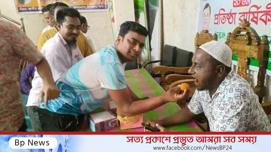 রাশেদুজ্জামান জুয়েল মন্ডল কাউন্সিলর নির্বাচিত হওয়ায় কলমাকান্দায় মিষ্টি বিতরণ