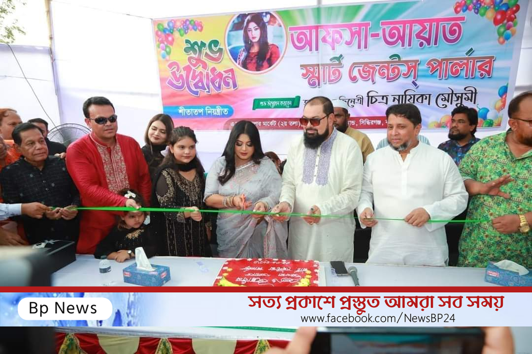 সর্বশেষ অভিনেত্রী মৌসুমী ফিতা এবং কেক কেটে আফসা আয়াত স্মার্ট জেন্টর্স পার্লারের উদ্বোধনসহ পার্লারটির সাফল্য কামনা করেন।