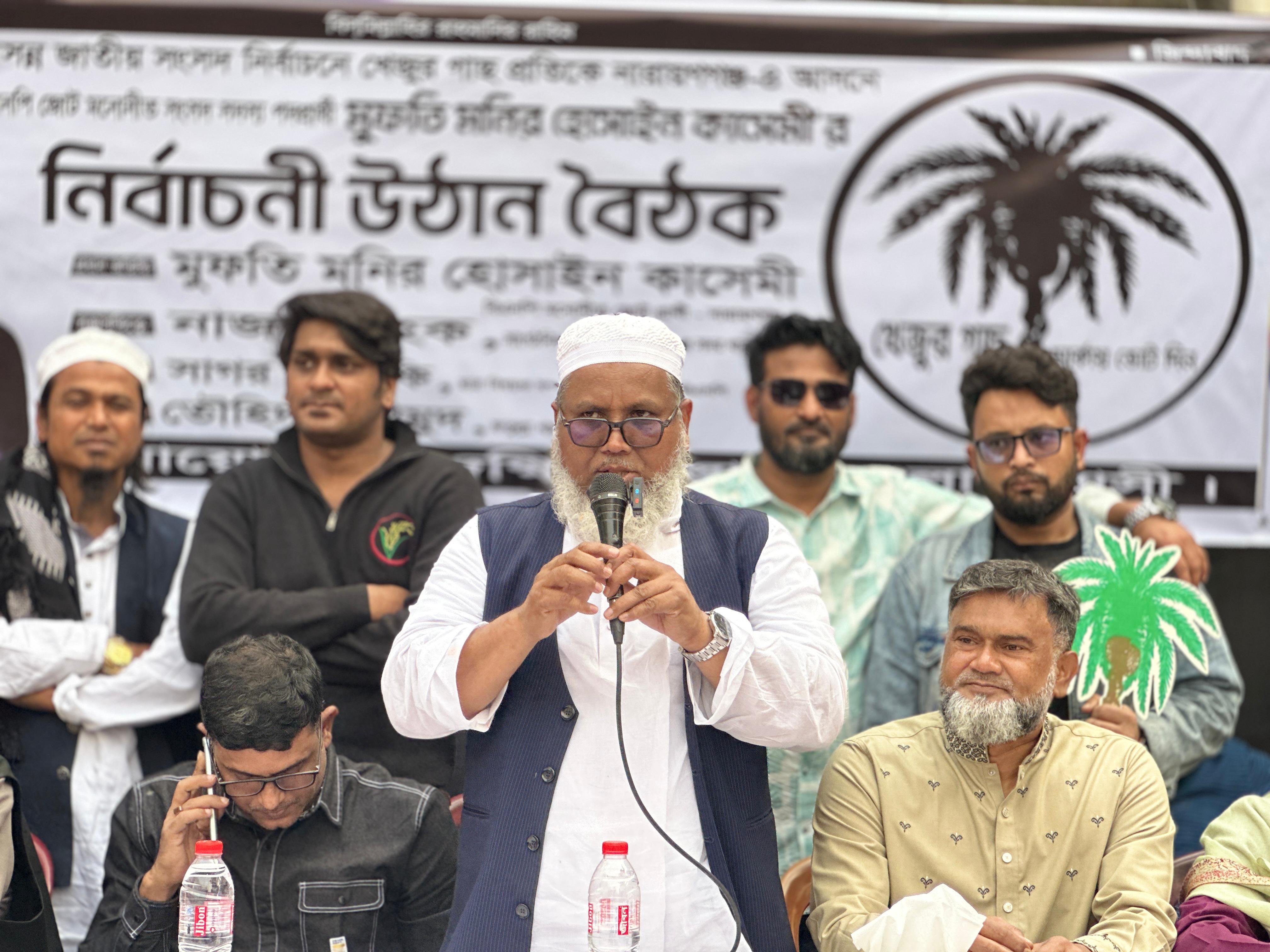 তিনি বলেন, “মুফতি মনির হোসাইন কাসেমী একজন সৎ, ত্যাগী ও ইসলামী মূল্যবোধে বিশ্বাসী মানুষ। তিনি বিনা অপরাধে তিন বছর কারাবরণ করেছেন। ত্যাগী নেতার কষ্ট ত্যাগী নেতারাই বোঝে। তাই আমরা সবাই খেজুর গাছ প্রতীকের পক্ষে ঐক্যবদ্ধভাবে কাজ করবো ইনশাআল্লাহ।”
