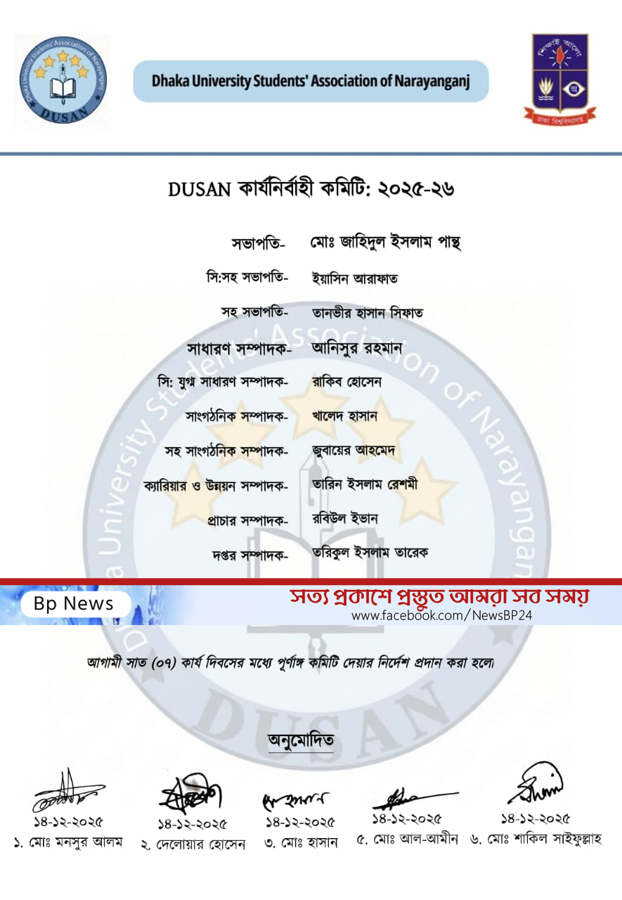 ঢাকা বিশ্ববিদ্যালয় স্টুডেন্টস অ্যাসোসিয়েশন অব নারায়ণগঞ্জ'র নতুন কমিটি ঘোষণা