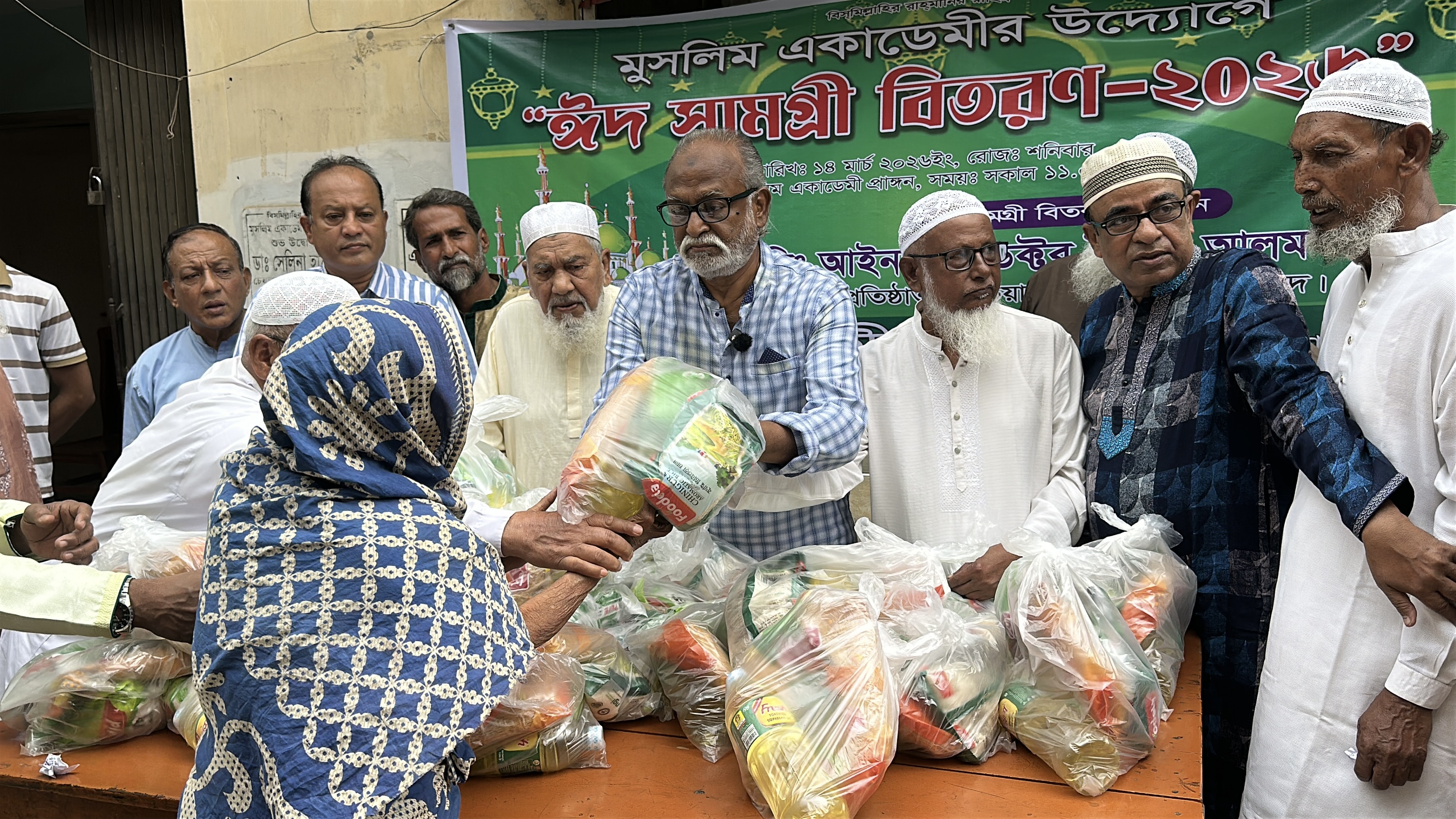 মুসলিম একাডেমীর উদ্যোগে গরিব, দুঃখী, অসহায় ও দুস্থ মানুষের মাঝে ঈদ সামগ্রী বিতরণ করা হয়েছে।