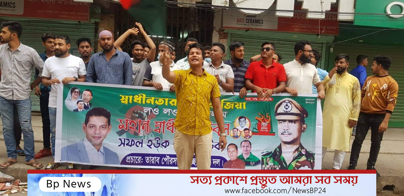 স্বাধীনতা দিবসে তারাব পৌর স্বেচ্ছাসেবক দলের নেতা রায়হানের নেতৃত্ব বিশাল বিজয় রেলী