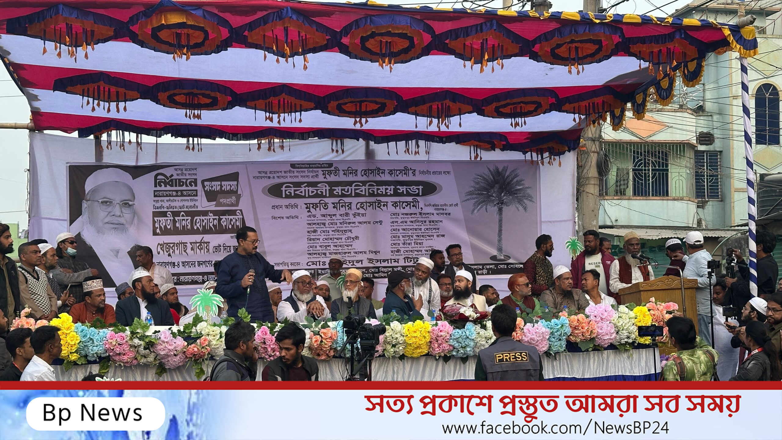আর এই নারায়ণগঞ্জ-৪ আসনে বিএনপি জোটের প্রার্থী মুফতি মনির কাসেমী যদি এমপি হোন, তাহলে সবচে বেশি অনুদানের টাকা নারায়ণগঞ্জে আনতে পারবেন। কেননা তারেক রহমানের খুবই বিশ্বস্ত মানুষ তিনি। তাই আপনারা যদি এ আসনের রাস্তাঘাটের উন্নয়ন করতে চান, একটি সুন্দর সমাজ গঠন করতে চান তাহলে মুফতি মনির কাসেমীকে খেজুর গাছে ভোট দিয়ে নির্বাচিত করুন।