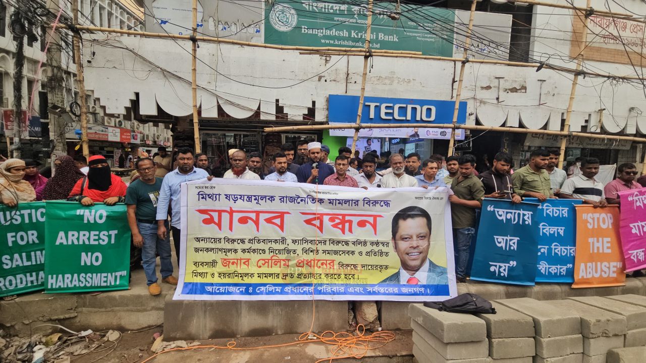 ব্যবসায়ী ও সমাজসেবক সেলিম প্রধানের বিরুদ্ধে দায়ের করা মিথ্যা মামলা, হয়রানি ও অবিচার বন্ধের দাবিতে নারায়ণগঞ্জে মানববন্ধন কর্মসূচি পালন করা হয়েছে।