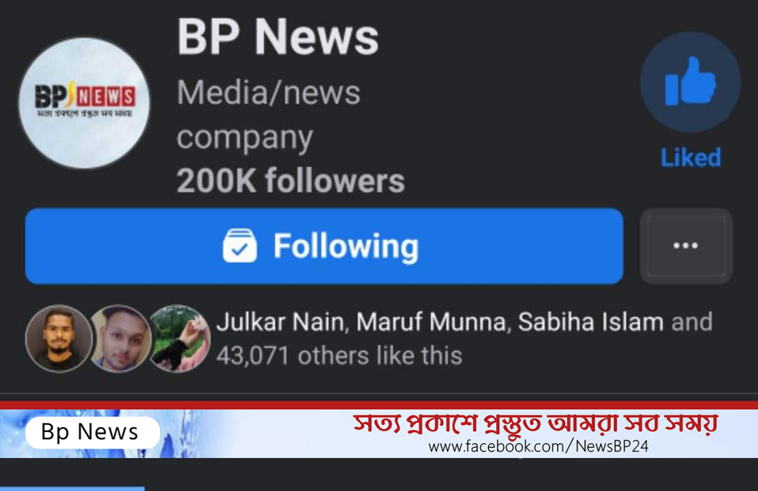 BP News এর ফেসবুক পেজ ফলোয়ার ছাড়াল ২ লাখ।